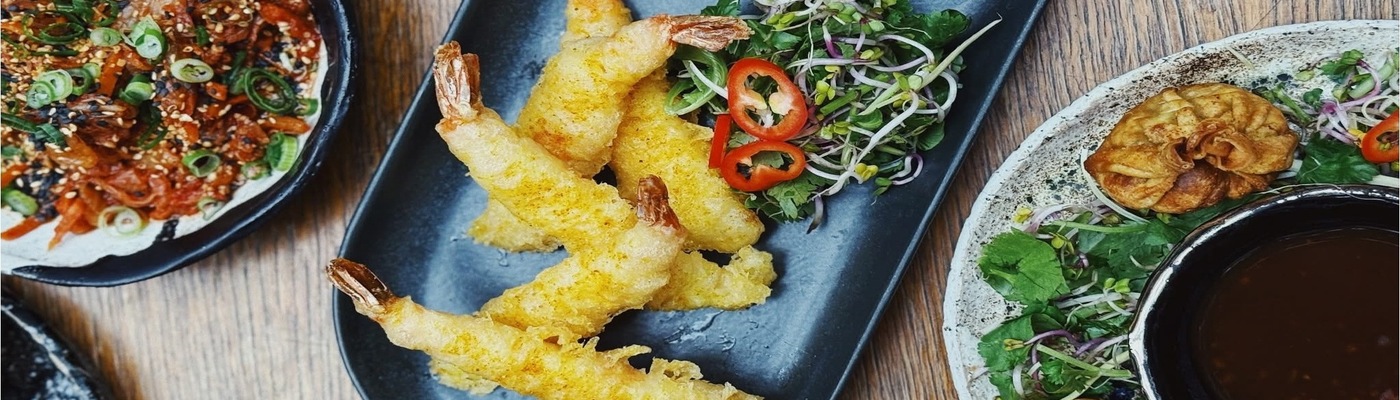 Prażynki krewetkowe, bataty, krewetki w panierce + GRATIS zestaw 3 dodatkowych sosów: wasabi mayo, sambal truflowy, sos ananasowo-tamaryndowy